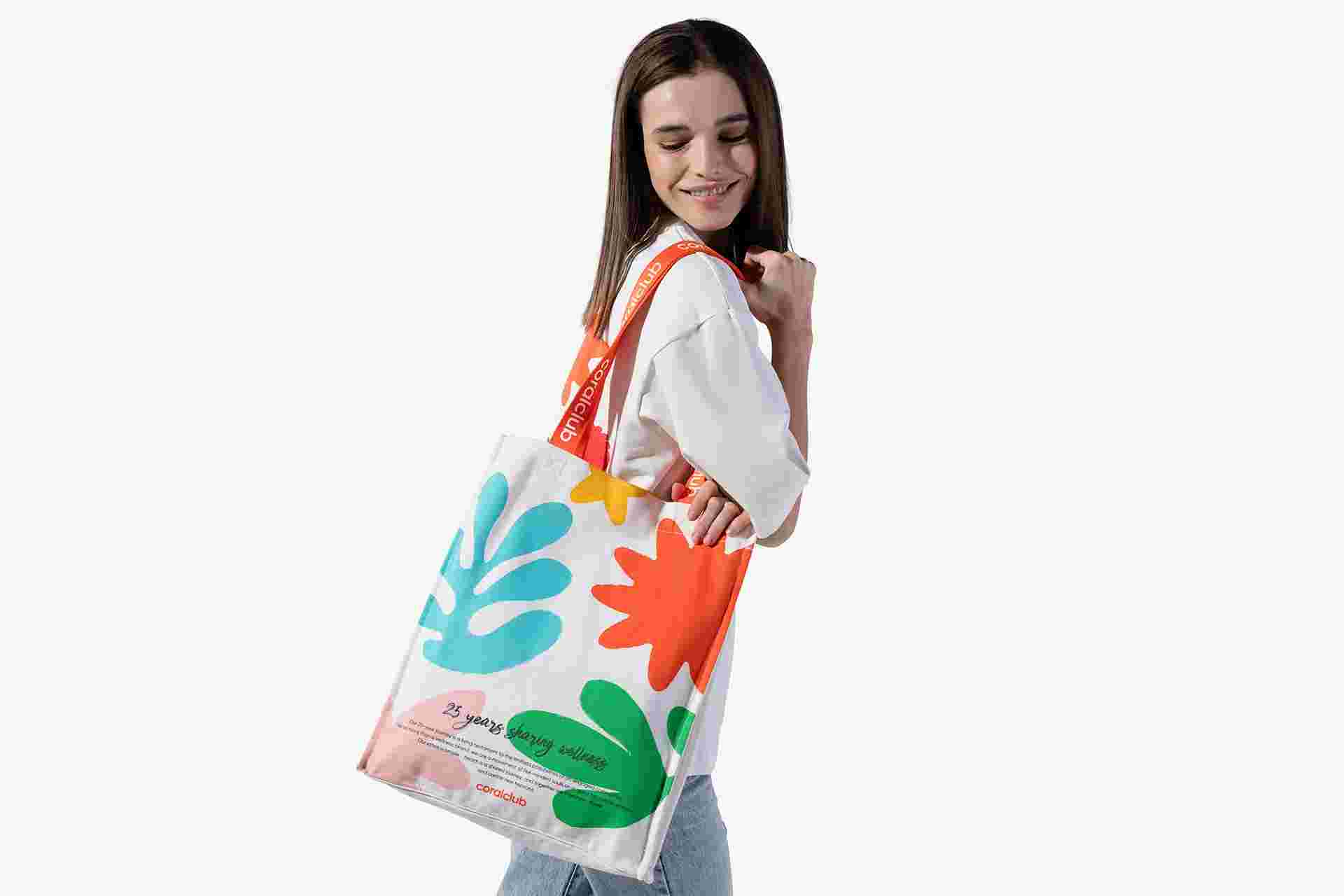 Spilgtā apdruka ir uzklāta uz abās somas pusēm un atspoguļo mūsu galvenos iedvesmas avotus — dabas, veselības un piesātinātas dzīves simbolus.